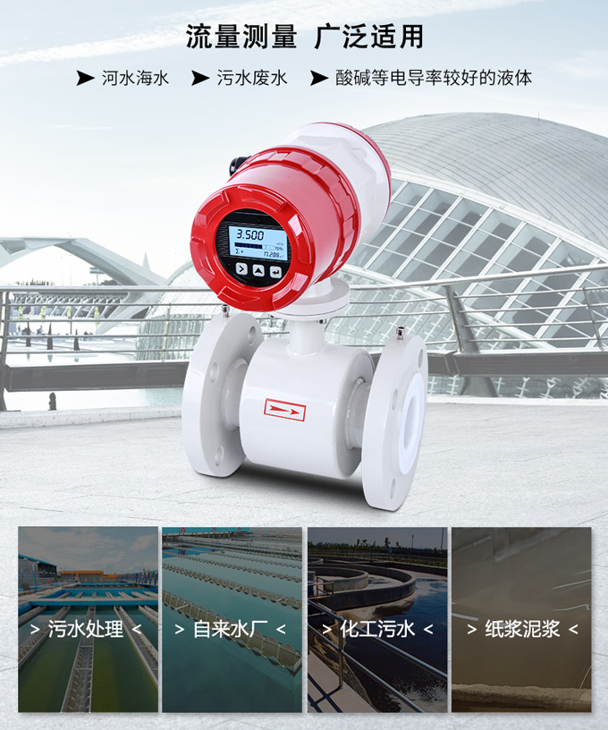 電磁流量計工作原理基于法拉第電磁感應定律。電磁流量計擁有壓損小、適用介質廣泛、可測流量范圍大等優勢被廣泛應用于各個行業。電磁流量計被廣泛應用于污水處理站(環保水控制、化工污水、電鍍污水)、鋼鐵冶金、給水排水、水利灌溉、自來水處理、泥漿紙漿、醫藥食品等生產工藝過程。