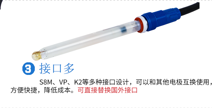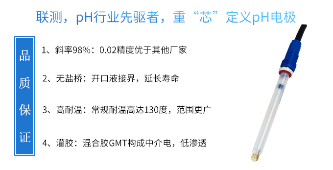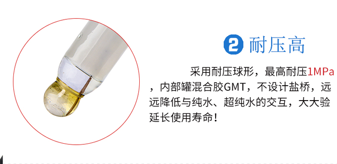 聯測SIN-pH5100電極使用耐壓半球形pH敏感膜,混合膠GMT構成的中介電介質,Ag/AgCL/KCL外參比體系,無鹽橋(OPEN)開口液接界所構成。