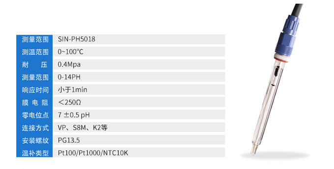聯(lián)測pH5018電極敏感區(qū)域大、抗機械沖擊強,耐溫100度。該電極能廣泛用于微生物技術(shù)、制藥、食品飲料、制糖,包括氯堿、采礦冶煉、造紙、紙漿、紡織品、石油化工、半導(dǎo)體電子工業(yè)等各種化工流程及廢水處理等領(lǐng)域。