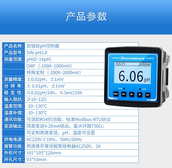 SIN-pH3.0型工業pH計,是工業酸度計的智能化升級產品??蓪ξ鬯畃H值進行連續測量或根據現場工況進行定量控制,來選擇相應的pH電極以有效提高產品的測量精度和延長產品的壽命。