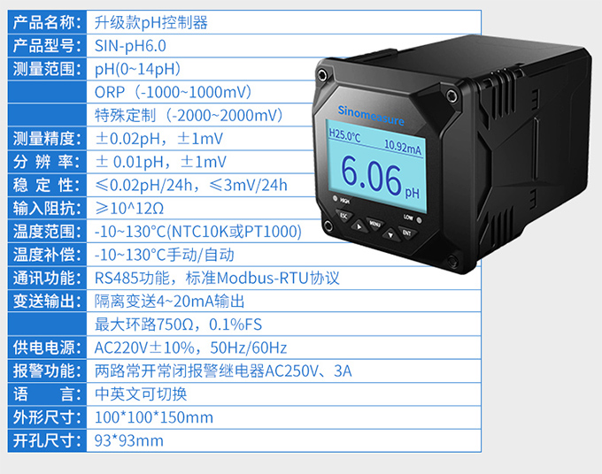 SIN-pH6.0型工業pH計,是工業酸度計的智能化升級產品。可對污水pH值進行連續測量或根據現場工況進行定量控制。